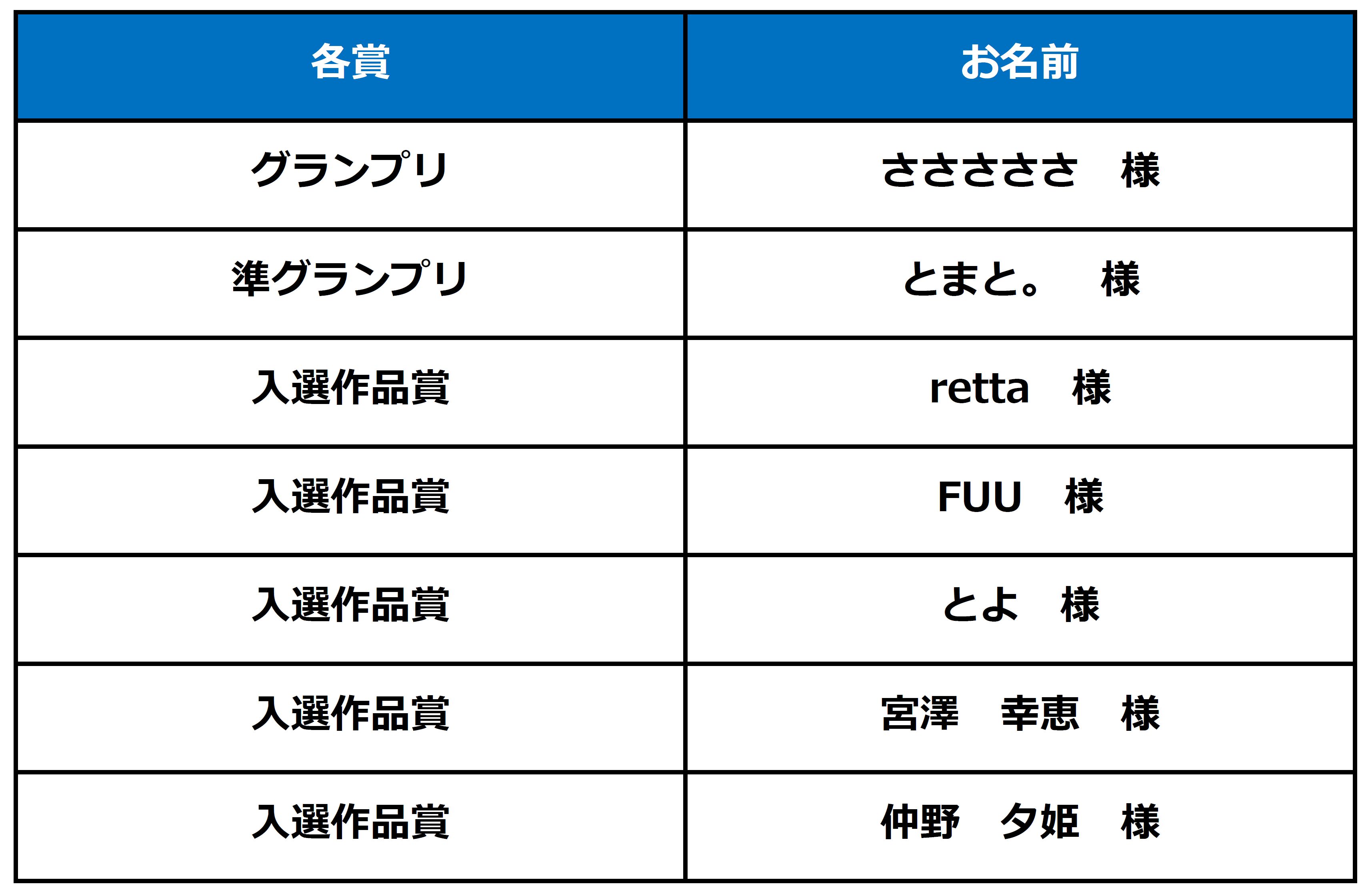 ・準グランプリ 1名 (賞状、5,000円分カタログギフト)