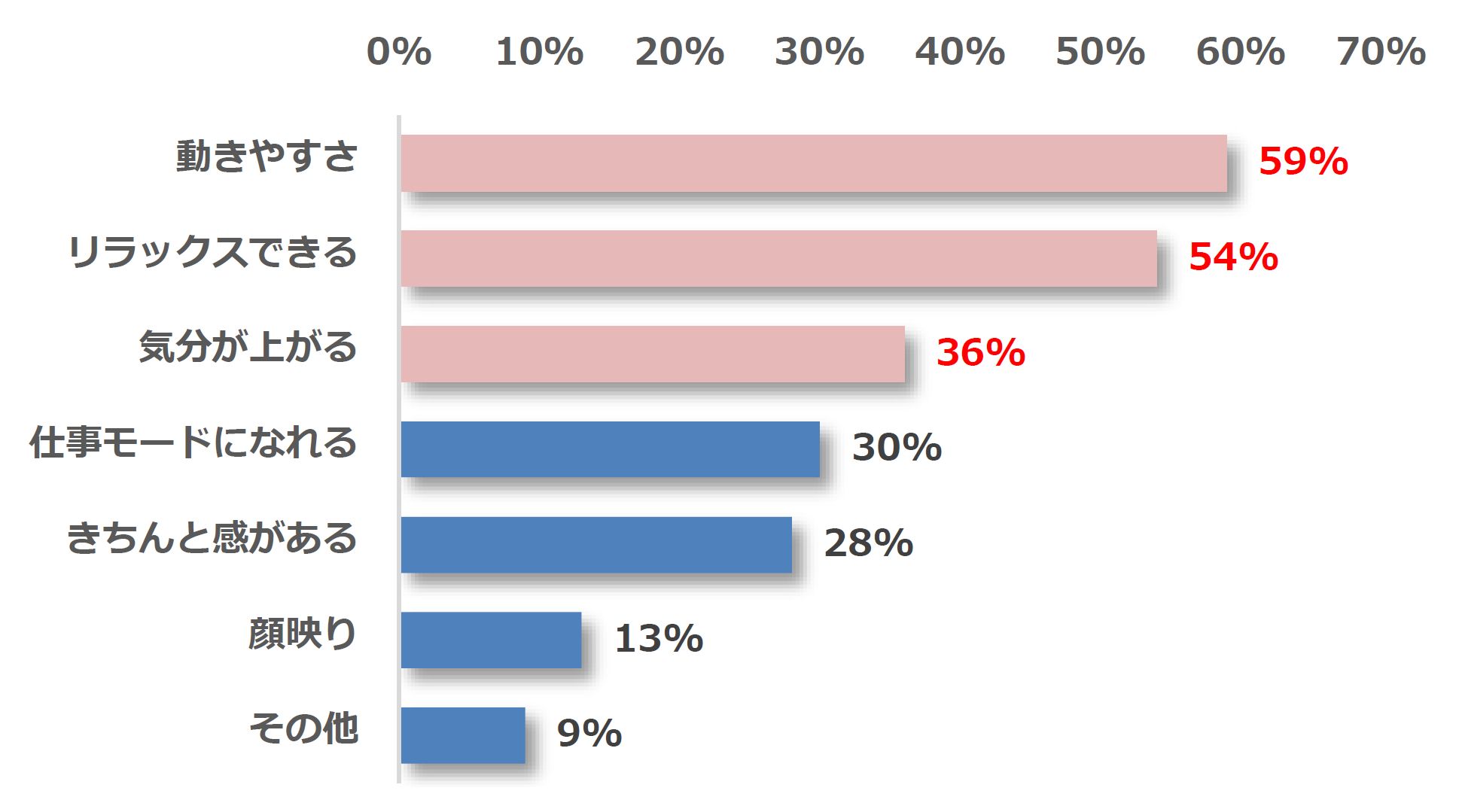 リモートワーク時に服装で気にしているポイント第1位は「動きやすさ(59%)」