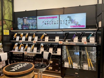 特定のコーナーにはiPadを設置し、ご希望の商品をスムーズに見つけたり、お客様自ら在庫の確認が可能となり、通常価格の他、ワンプライス(工賃込み価格)を表示します。本コーナーでは、iPadと店舗スタッフが連携してベストな商品とワンプライスでの価格を瞬時にご提案いたします。商品購入だけでなく、取付まで可能な店舗の強みを打ち出すことで、お客様にとって「最も便利な」店舗を目指します。その他、今後は他のお客様のインプレッションをもとにした商品の購入が可能になり、これまでにないバイク用品選びが体験できるようになります。