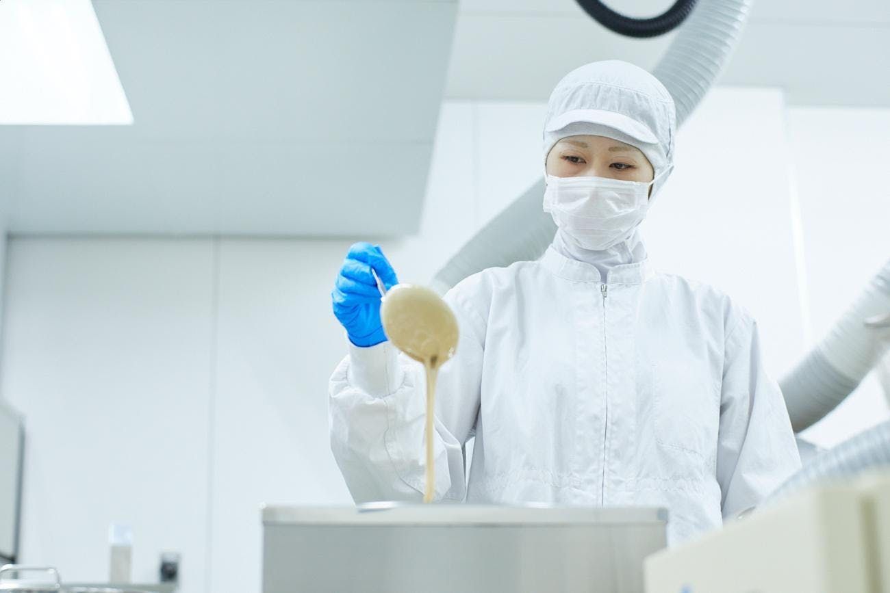 グミにチョコレートをコーティングする「チョコがけ」の作業にあたって重要になってくるのが「チョコレートの粘度」。サラサラすぎると固まらず、ドロドロすぎるとチョコレート同士がくっついて、形がくずれてしまいます。そのため職人たちは、季節や時間帯によって変化する素材の状態を常に感じとり、チョコレートの温度や、固めるために冷風をかける時間を変えるなど、分単位で微調整。常にチョコレートを最適な状態に保つことで、できあがりに違いを生みだしています。