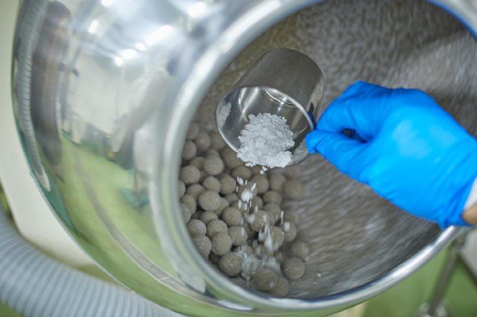 チョコレートが規定の大きさになったら、チョコがけ作業は終了。パウダーをかけて仕上げていきます。このパウダー、少な過ぎれば粒同士がくっついてしまう原因になり、多過ぎればチョコレートの味わいを邪魔してしまいます。そのため、職人はここでも、適量を見極め、ベストな量を窯の中に投入します。