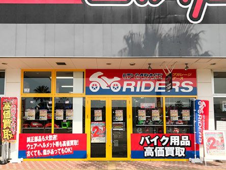 店舗事業では、関東圏を基軸に東北から東海・近畿・中国・四国、九州、海外では台湾の27店舗(中古バイク用品買取販売「アップガレージライダース」5店舗含む)を運営しており、店舗売場総面積は5,653坪、一店舗取り扱いアイテム数は35,000点以上と大型店舗の利点を生かし、国土交通省認可の認証工場でのピットサービスを完備、部品の交換や取り付け、車検や洗車などオートバイライフに必要なあらゆるサービスを提供しています(2020年11月現在)。