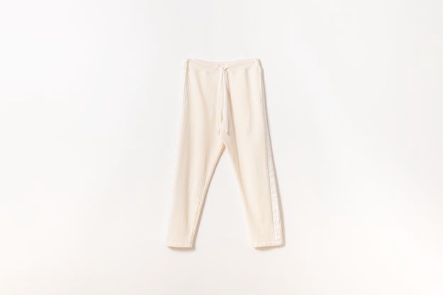 カフェアスリートのアンダーウェア用に、テレコ素材と幅広ゴムを新しく開発しました。細番手のオーガニックコットン糸と伸縮糸を一緒に編んだテレコ素材は、薄手ながらフィット感のある仕上がりです。幅広ゴムは、肌に当たる部分がなるべくオーガニックコットンになるようにこだわり、ショーツやレギンスのウエスト、ブラのアンダーバスト部分に使っています。