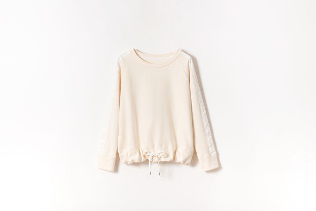 白のサテン地をラインにあしらい、スポーツウェアらしいデザインにしました。