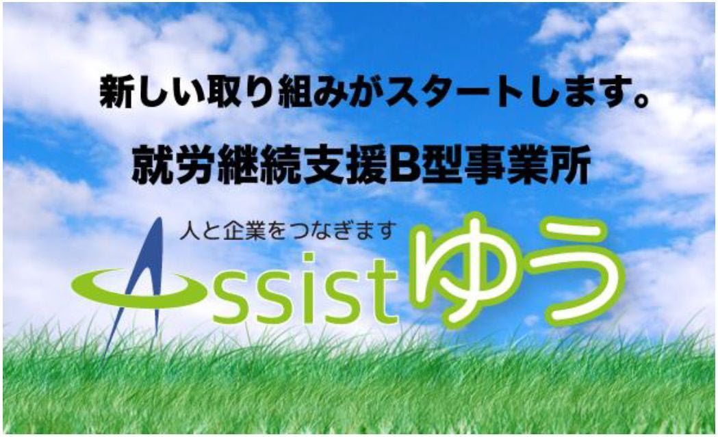 「アシストゆう」は、障害があり雇用されることが困難な方や、年齢心身の状態、その他の事情等で雇用に至らなかった方々が利用している障がい福祉サービス事業所です。包装・梱包作業、農業、組立て作業等さまざまな仕事を経験し、将来の就業に活かせる支援をしています。