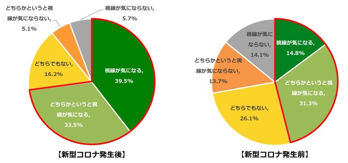 Q2.あなたは、花粉症によるくしゃみや鼻水に対する周囲の視線が気になりますか?コロナ禍前後の状況それぞれお答えください。