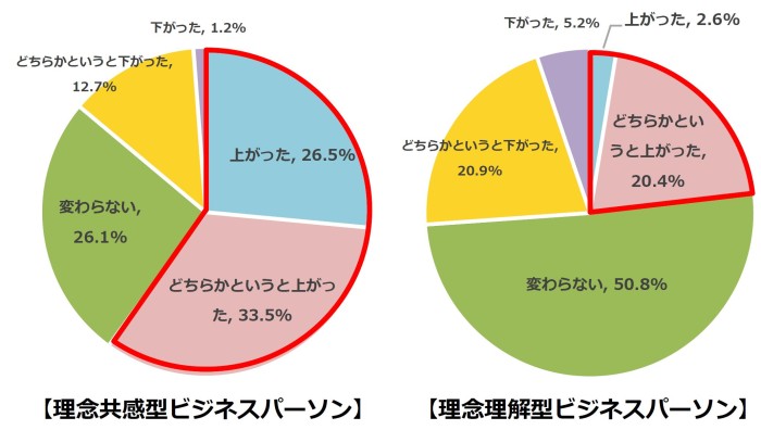 → 理念共感型ビジネスパーソン:77.1%、理念理解型ビジネスパーソン:53.4%