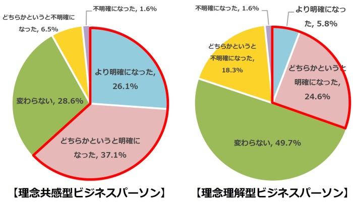 → 理念共感型ビジネスパーソン:65.7%、理念理解型ビジネスパーソン:35.1%