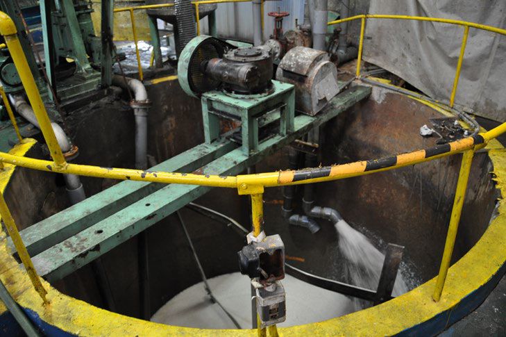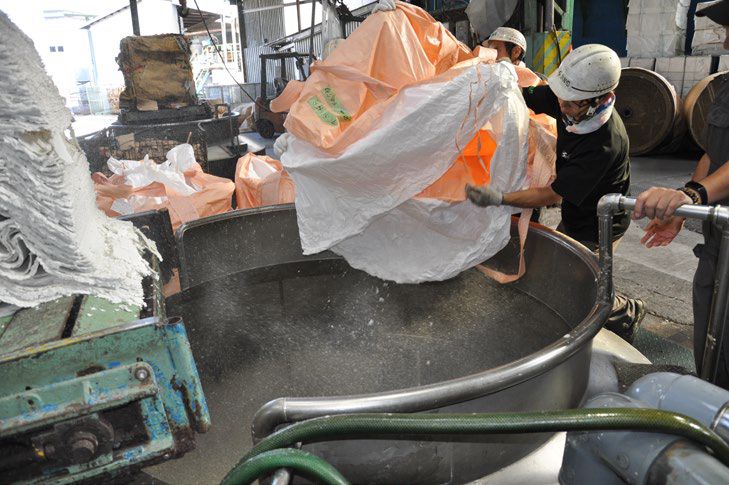 しっかりと撹拌させた原料から不純物を除去していきます。より純度を高めていくために、3度手間の作業で除塵をしてきます。
