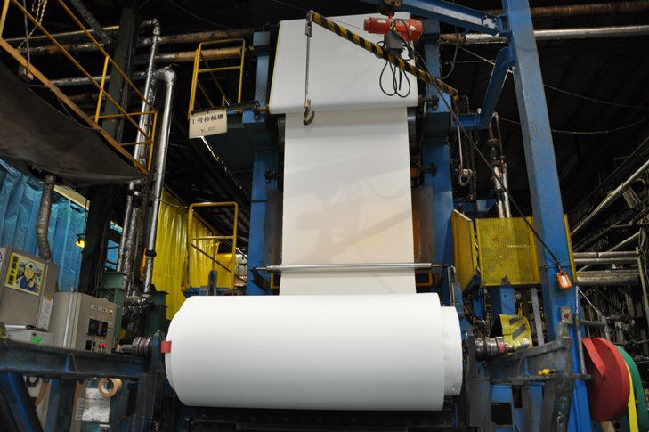 ドライヤーという乾燥させる工程を経て、紙を巻き上げていきます。オーガニックコットンの裁ち落としの生地が、新たに「リコットンペーパー」として生まれ変わった瞬間です。