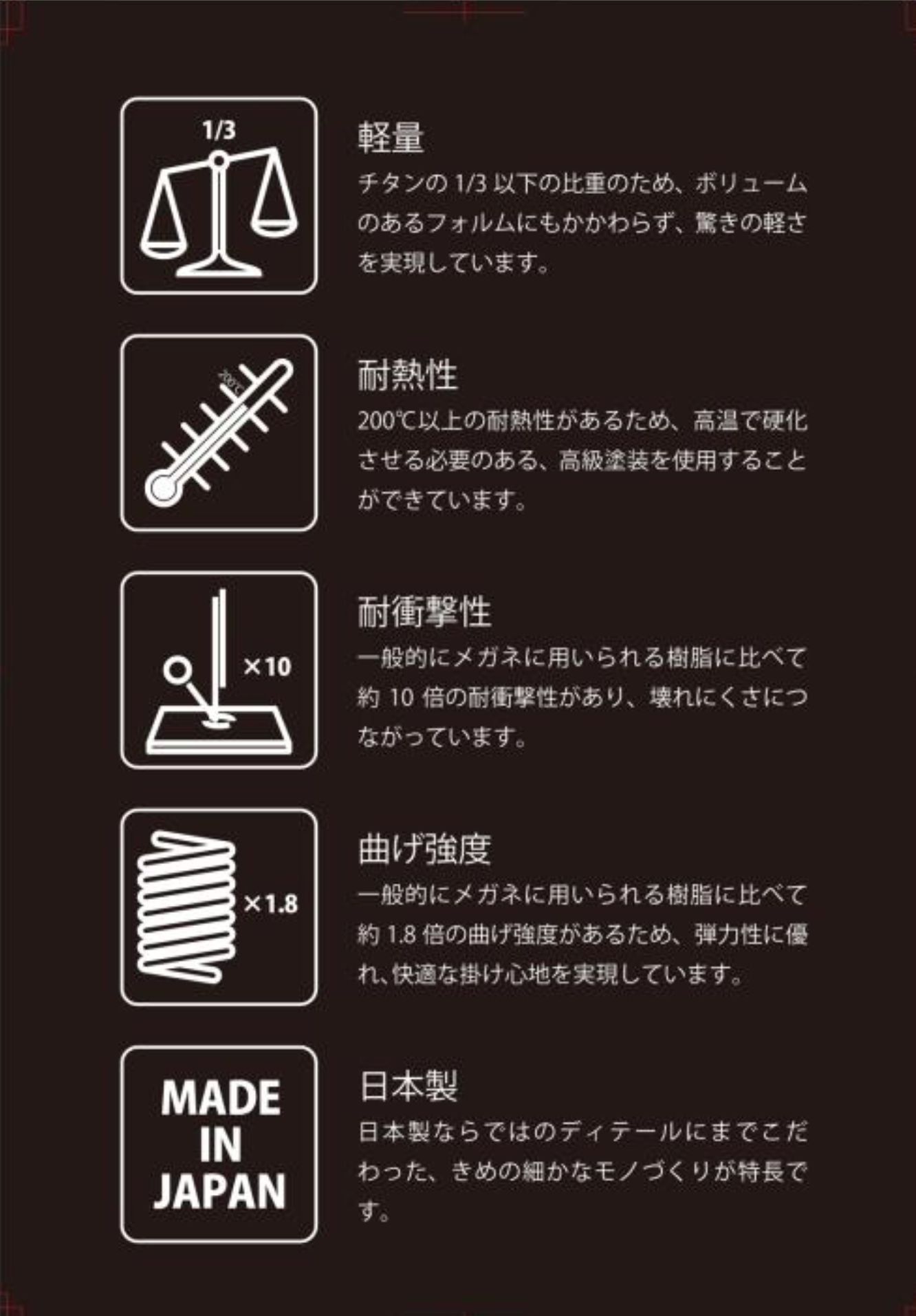 汗をかいてもフレームへの浸食が少なく軽量で掛け心地もいいことから、ジョギングやウォーキング、サイクリングなどアクティブなスポーツシーンでのご使用はもちろん、デイリーでも十分ご使用できるデザインとなっております。
