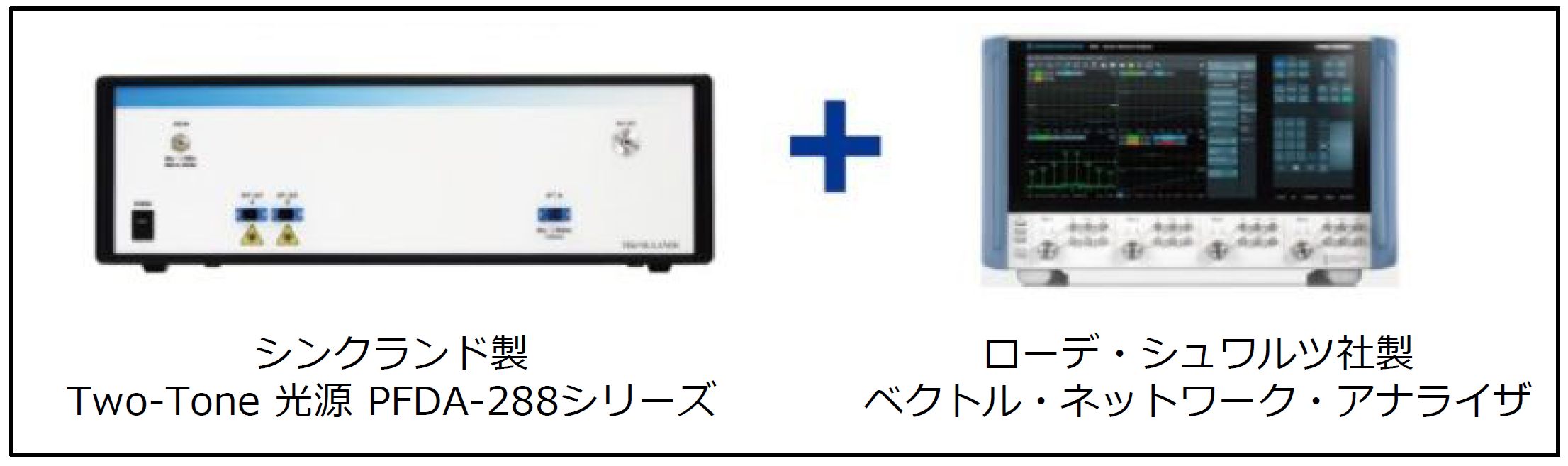さらに、「Two-Tone 光源」は、国立研究開発法人情報通信研究機構の成果を基にした技術であり、純粋日本国産技術による装置になっています。また、「R&S ZNAベクトル・ネットワーク・アナライザ」は、ドイツで開発された装置であり、お互いに純国産技術で開発した装置同士の組み合わせにより実現したソリューション製品となっています。