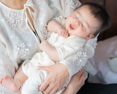 手足がよく動く赤ちゃんの体の動きに寄り添うように設計したパターンや、箇所によって縫製する糸の太さを変えるなど、着心地へのこだわりを詰め込み、ベビー・オーガニックコットンを専門に縫製する工場で仕上げています。