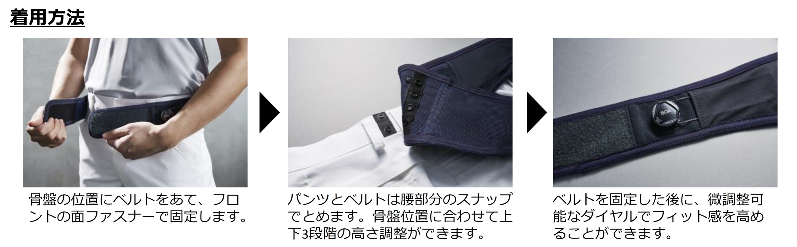 素材 パンツ:ポリエステル97%、ポリウレタン3%/ベルト本体:ナイロン、ポリエステル、ポリウレタン/ベルトBOA部分:ポリカーボネート、ナイロン、ポリエチレン、ポリエステル