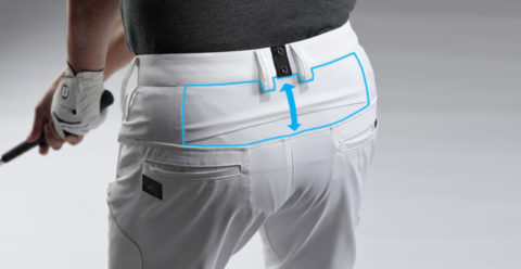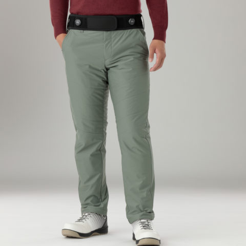 - サポート機能と動きやすさを兼ね備えた、腰部保護ベルト一体型ゴルフパンツ