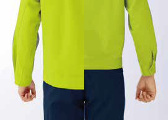 袖口:スリットなどの開口部を持たない袖口仕様(調節可能)。