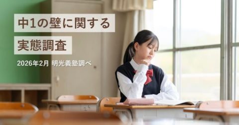 個別指導の学習塾「明光義塾」を全国展開する株式会社明光ネットワークジャパン(本社:東京都新宿区、代表取締役社長:岡本 光太郎)は、中学生のお子さまを持つ保護者1,000名を対象に、「中1の壁(中1ギャップ)に関する実態調査」を実施しました。
