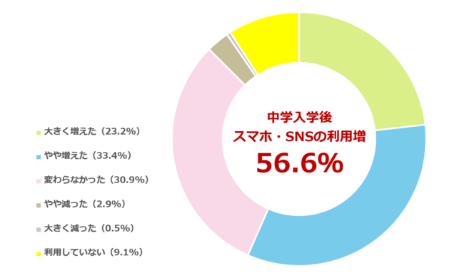 ・中学入学後、スマホ利用は増加傾向