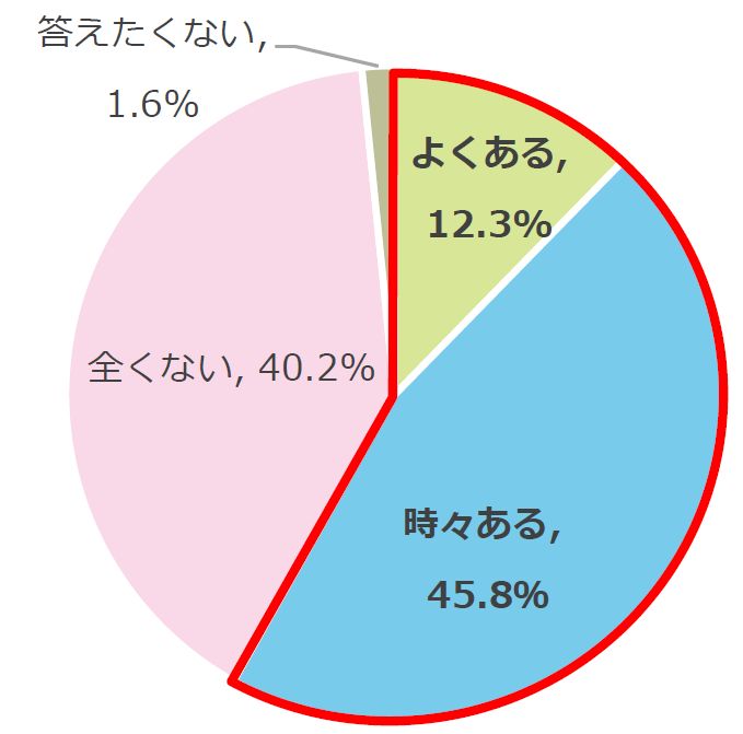 子どもがスマホを所有していると回答した430名を対象に、スマホが原因で子どもとトラブルになった経験があるか聞いたところ、「よくある(12.3%)」、「時々ある(45.8%)」と合わせて58.1%の保護者がトラブルになったことが分かりました。