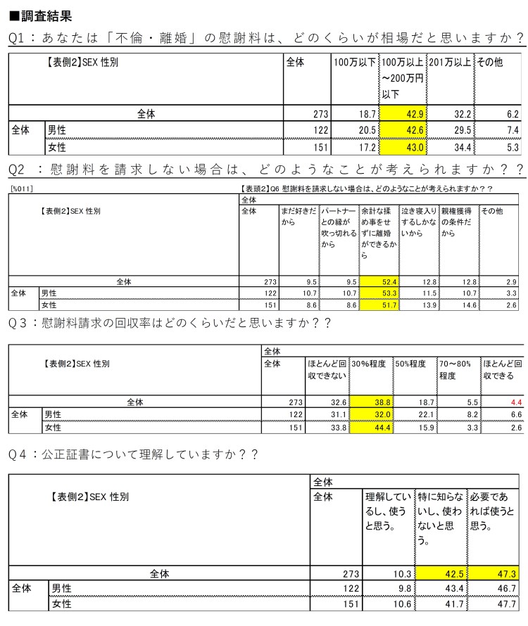 Q1:あなたは「不倫・離婚」の慰謝料は、どのくらいが相場だと思いますか?