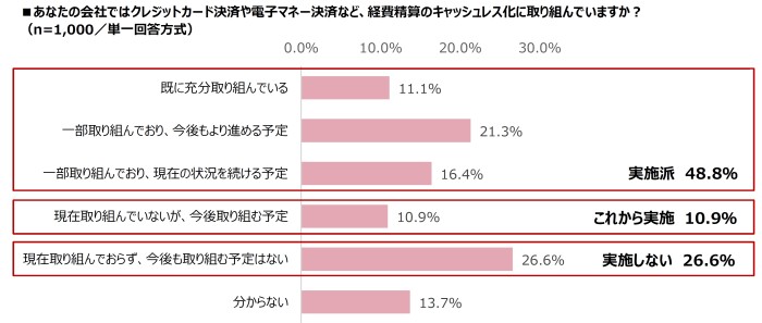 会社のキャッシュレス実施率は48.8%、これから実施は10.9%