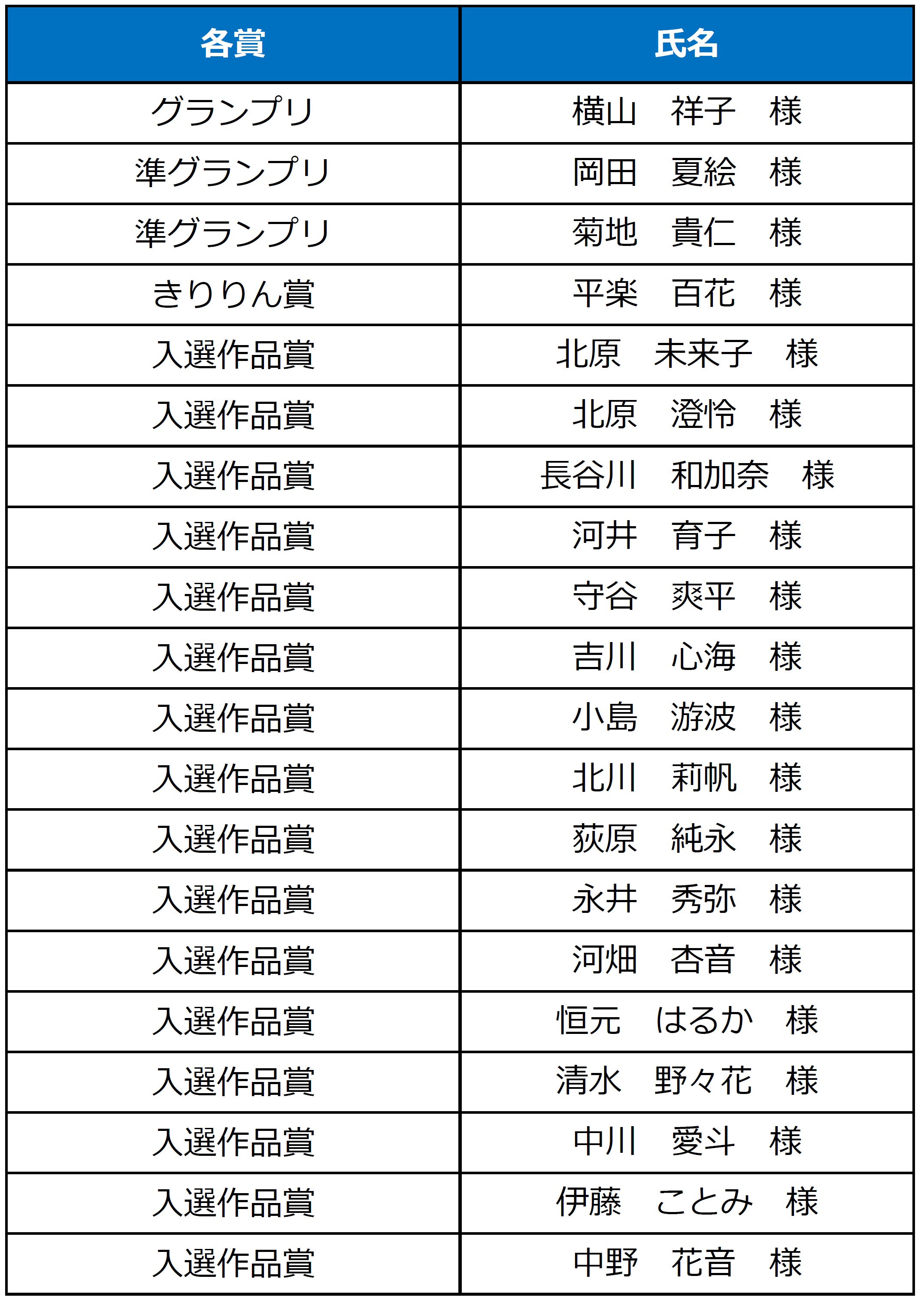 当社では、今後も様々なイベントを通じ、目と耳のトータルケアショップとして、地域の皆さまを笑顔にできるよう尽力して参ります。グランプリ及び各賞の受賞作品は次の通りです。
