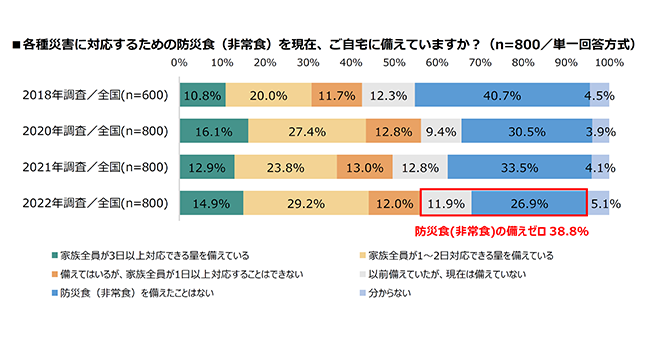 子どものいる家庭でも38.8%が防災食(非常食)を全く備えていない