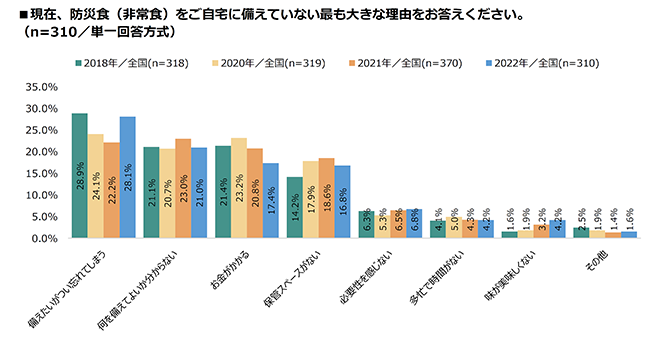 防災食(非常食)を備えていない理由、最多は「備えたいがつい忘れてしまう」28.1%